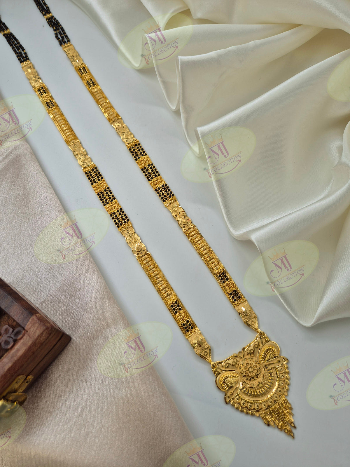 LENGHT : 38 inch MATERIAL : Copper STONE : Black Beeds FINISHING : 1 Gram Gold Plated  Classic Touch One Gram Gold Mangalsutra...
