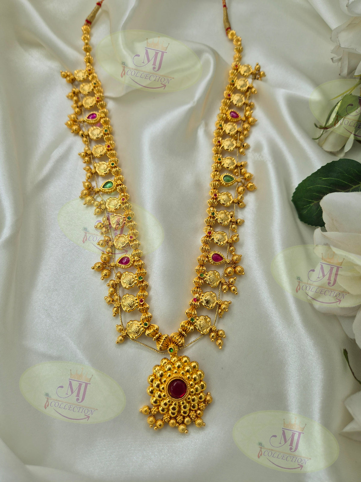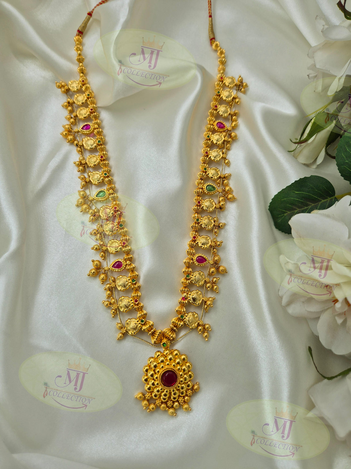 A luxurious and detailed saaj that adds grandeur to festive and wedding attire with its bold traditional design.