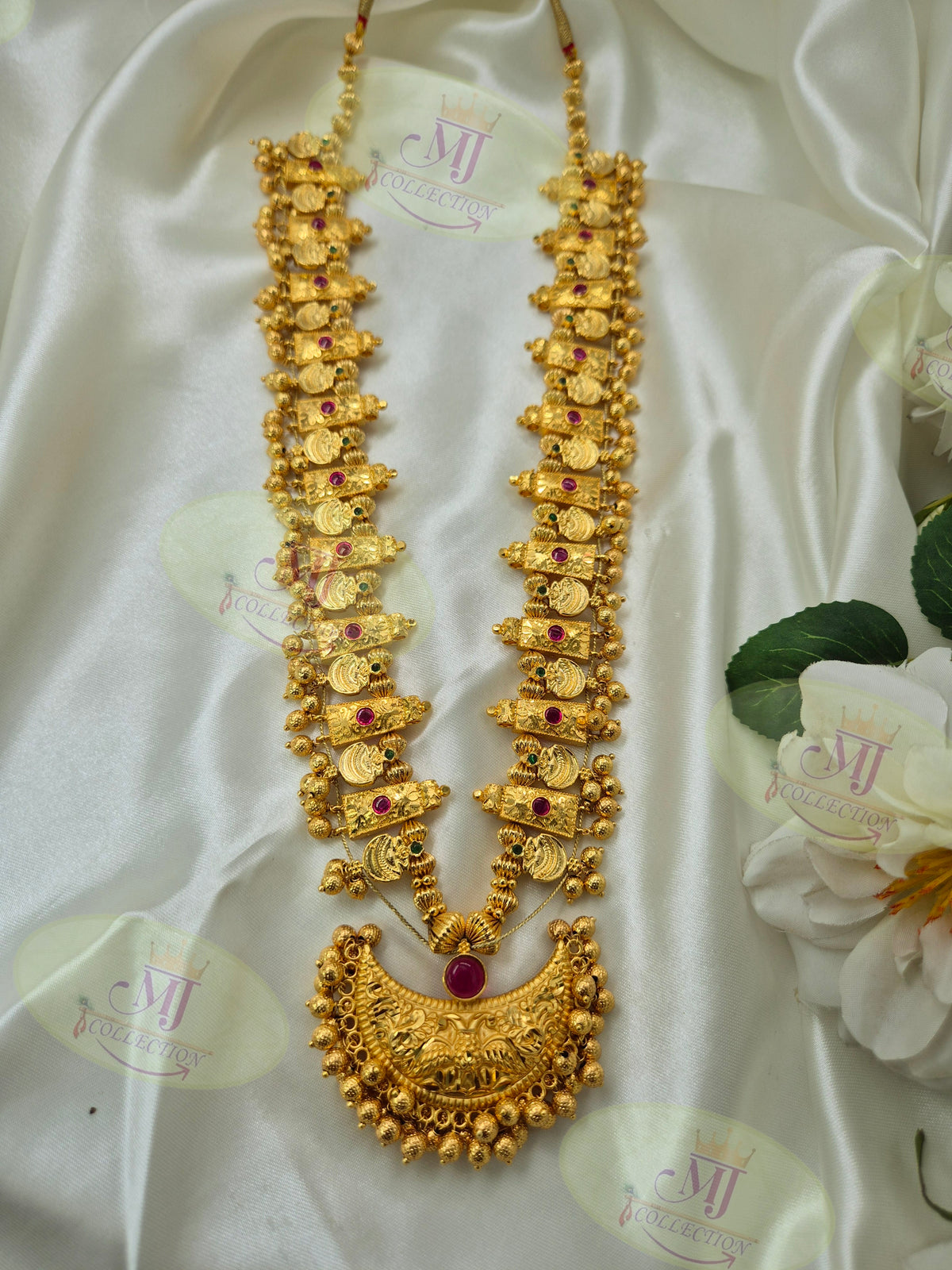 A luxurious and detailed saaj that adds grandeur to festive and wedding attire with its bold traditional design.