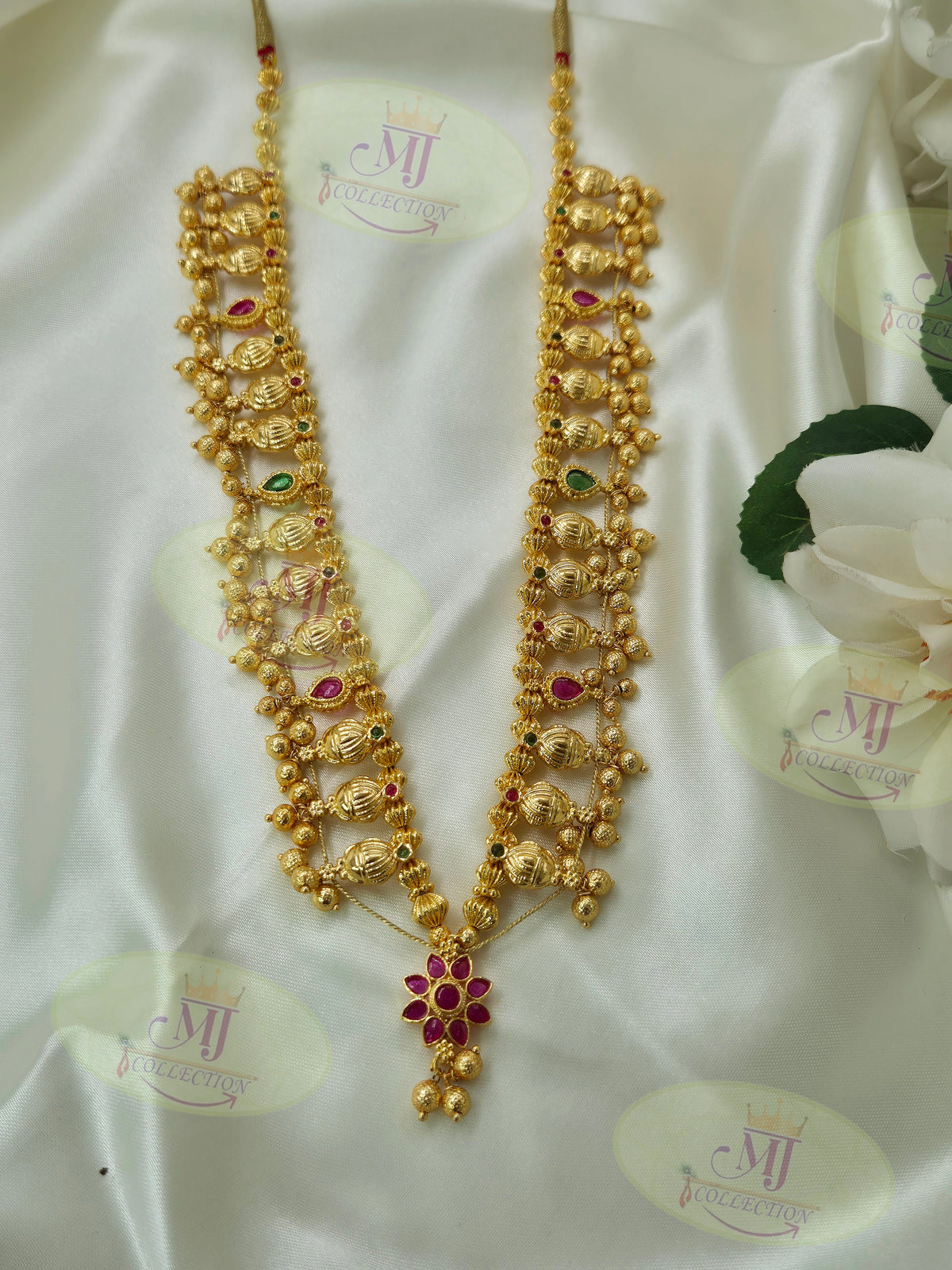 A luxurious and detailed saaj that adds grandeur to festive and wedding attire with its bold traditional design.