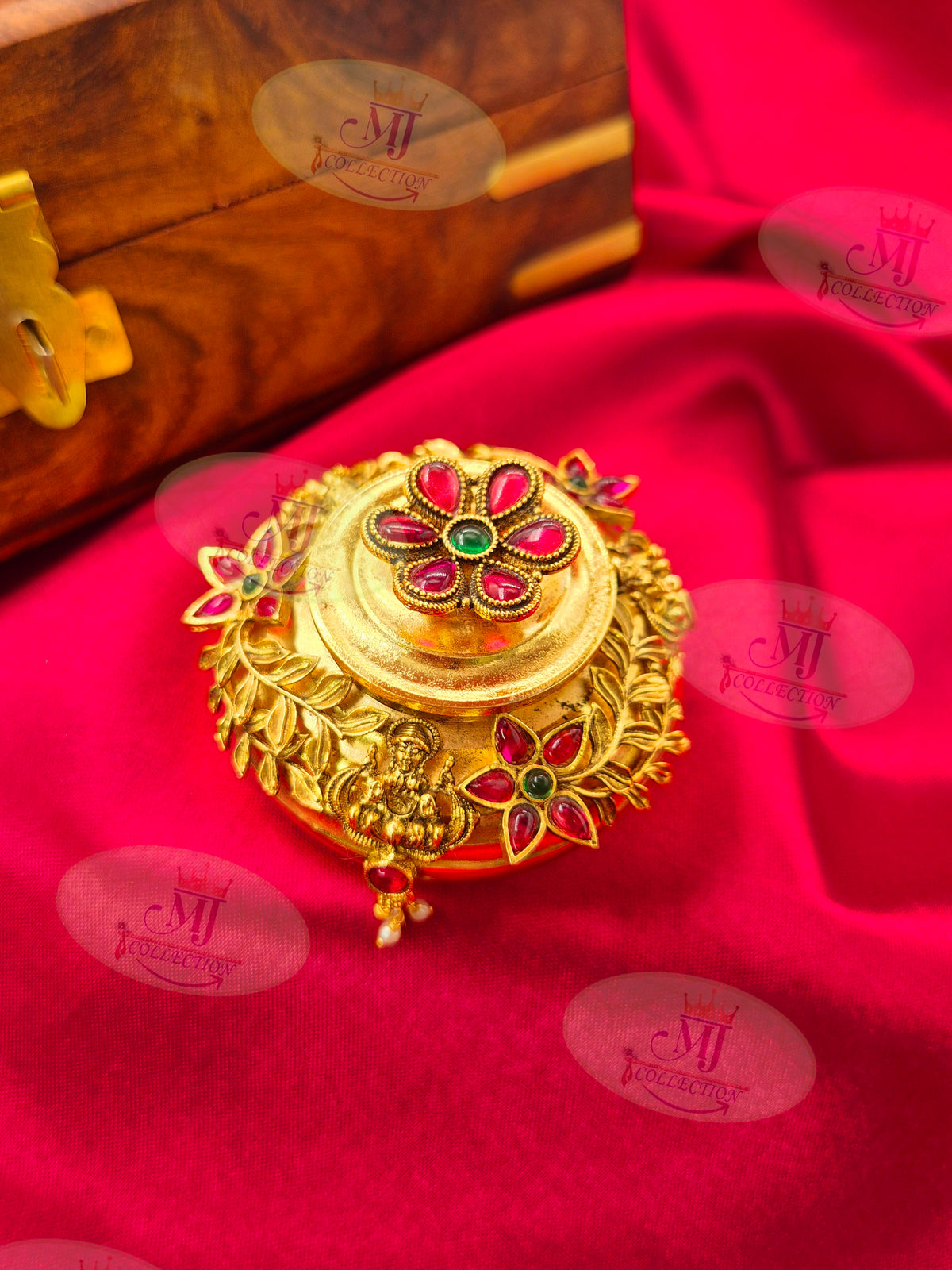 “Experience timeless elegance with this exquisite antique gold-plated Karanda from the MJ Collection — a masterpiece that will steal your heart the moment you lay eyes on it.”