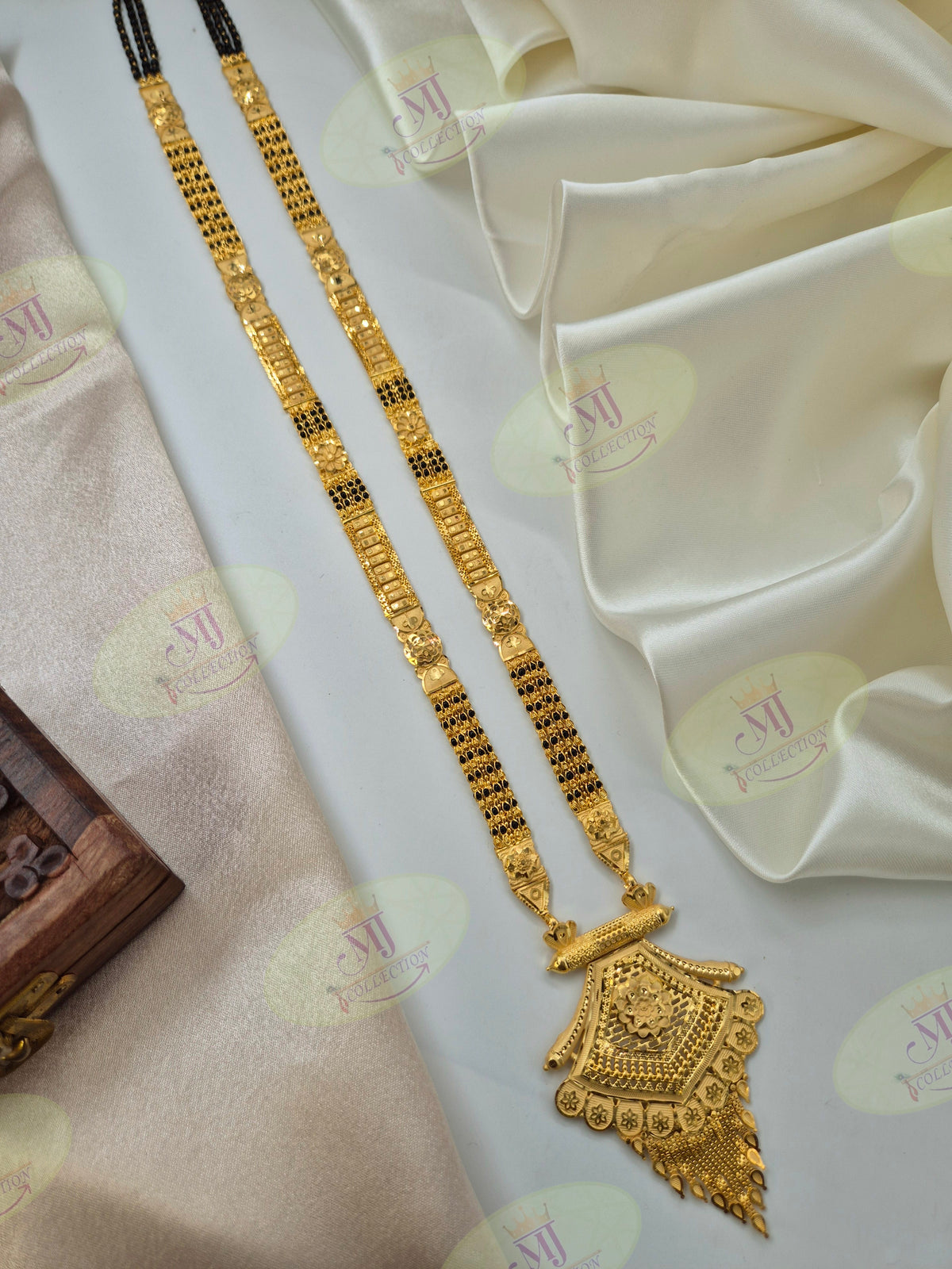 LENGHT : 38 inch MATERIAL : Copper STONE : Black Beeds  FINISHING : 1 Gram Gold Plated  Classic Touch One Gram Gold Mangalsutra...