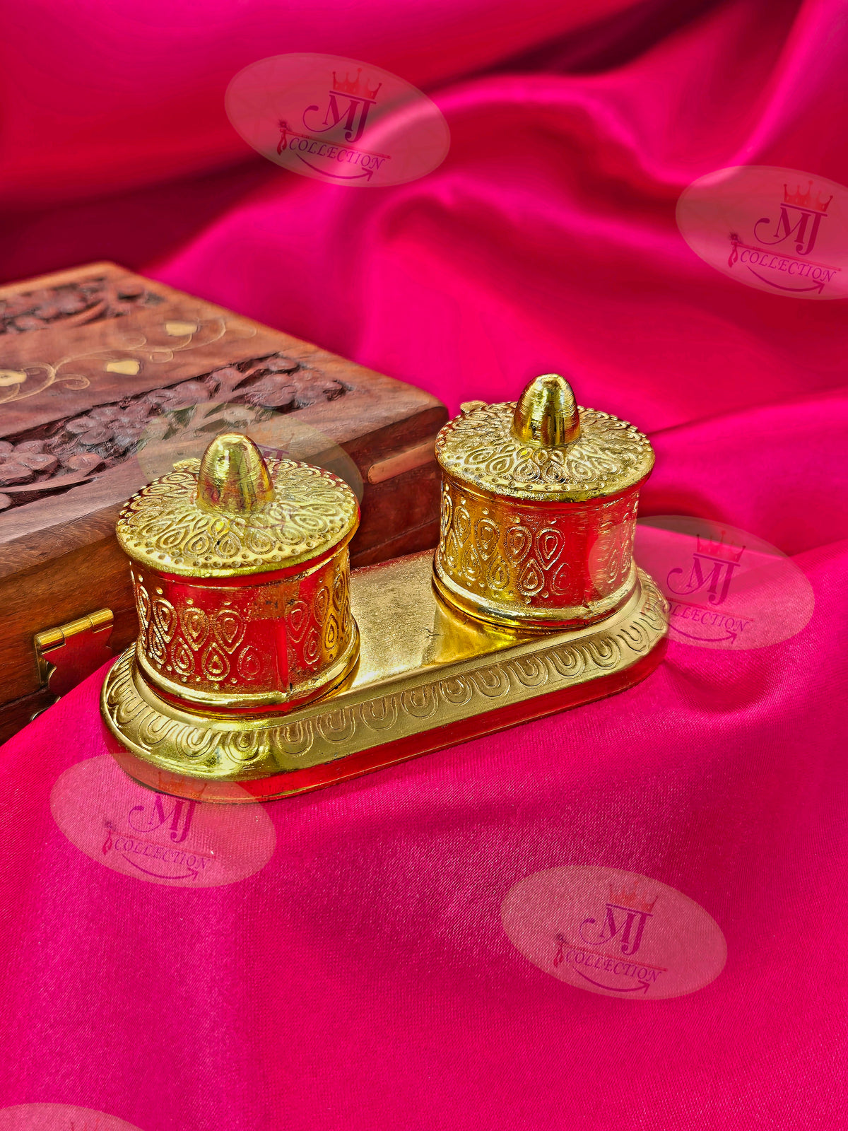 “Experience timeless elegance with this exquisite antique gold-plated Karanda from the MJ Collection — a masterpiece that will steal your heart the moment you lay eyes on it.”
